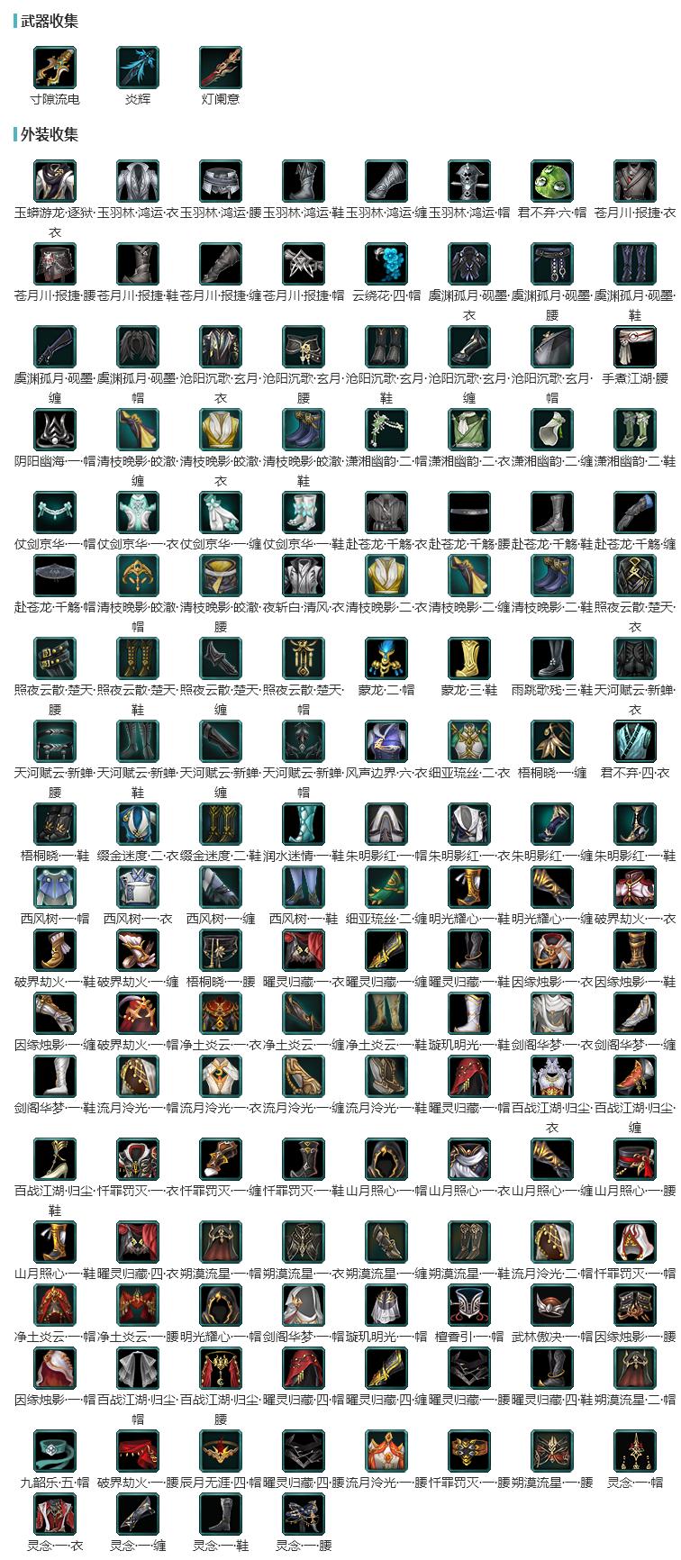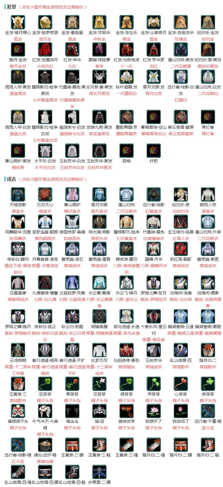 限时限量:[白九壤, 镜湖阑珊, 容与永逸, 客行逍遥天旷, 蓝沐云, 月寒凌苍, 烟花套, 水云寒桑海, 兰庭凤香, 客行逍遥撷英, 十二周年工作服, 镜湖云遥, 霆螭月华, 十三周年成衣, 明镜高悬, 锦夜游墨羽]