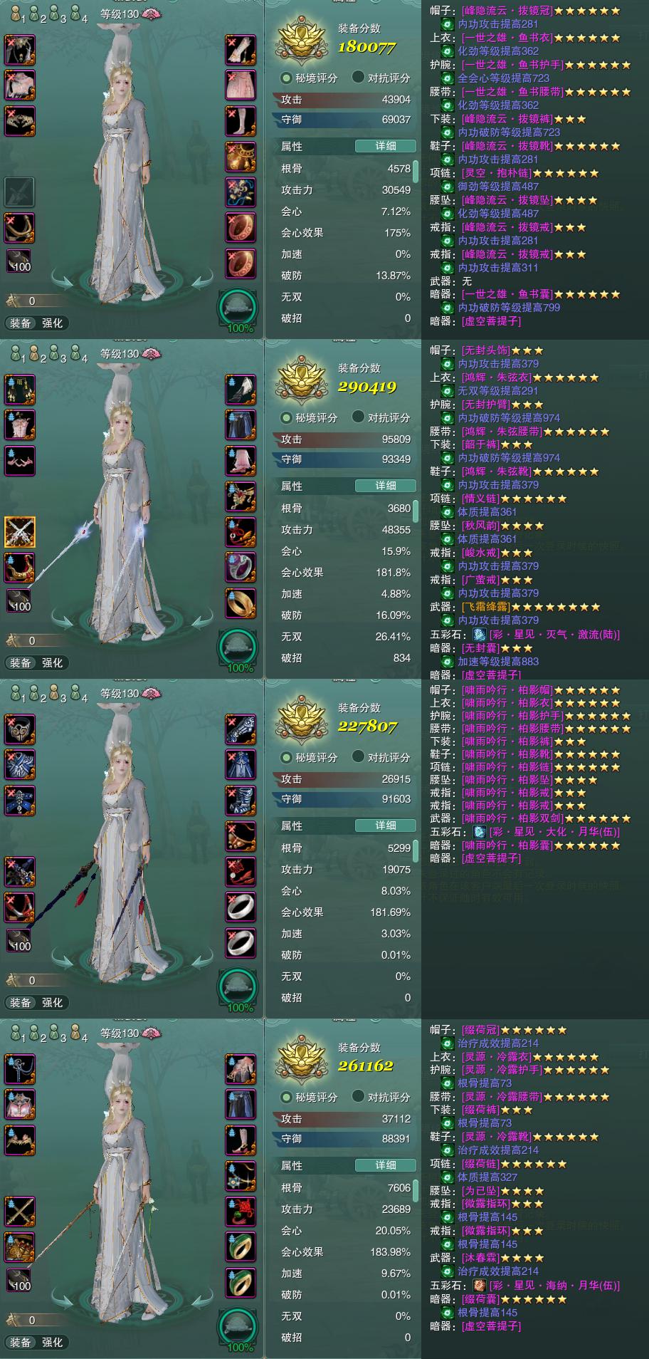 【装备】130级,装备一180077,装备二290419,装备三227807,装备四261162
