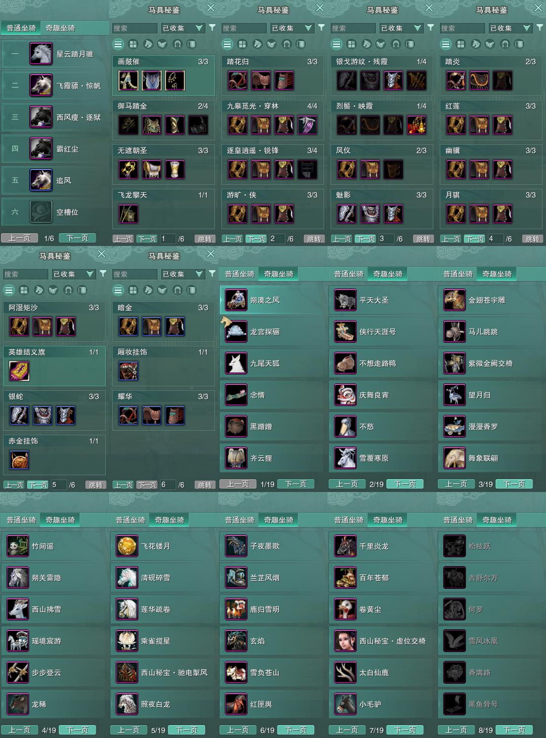【坐骑】5个[西风瘦逐狱, 星云踏月骓, 飞霞骠惊帆, 霸红尘]