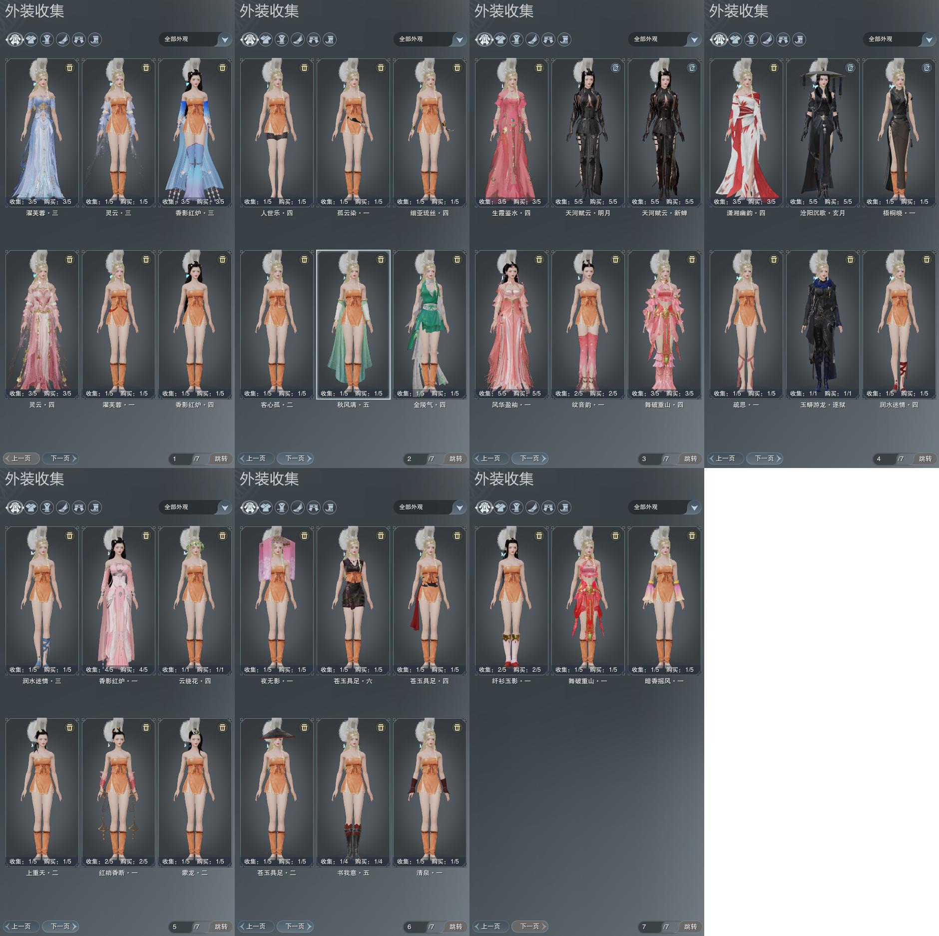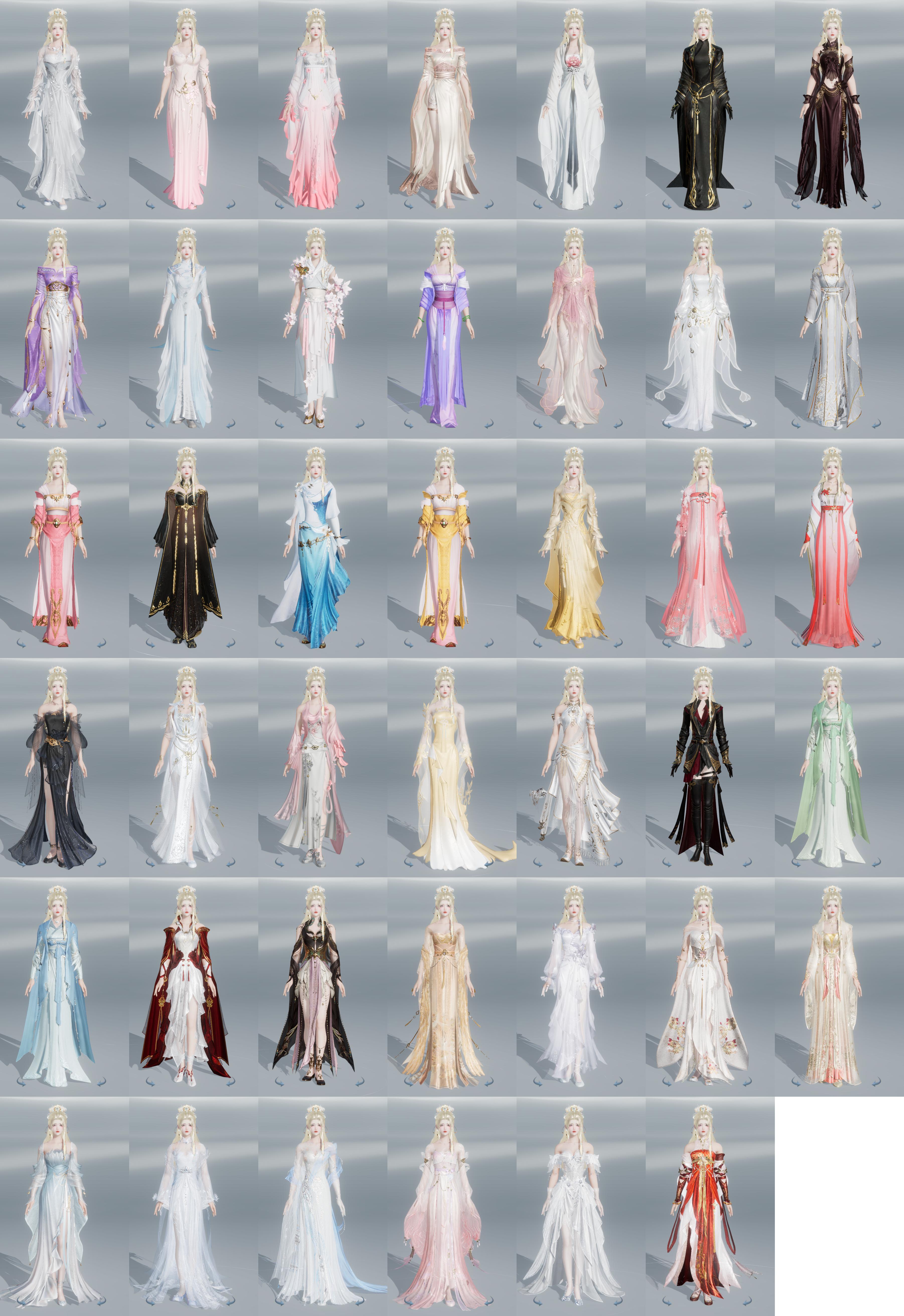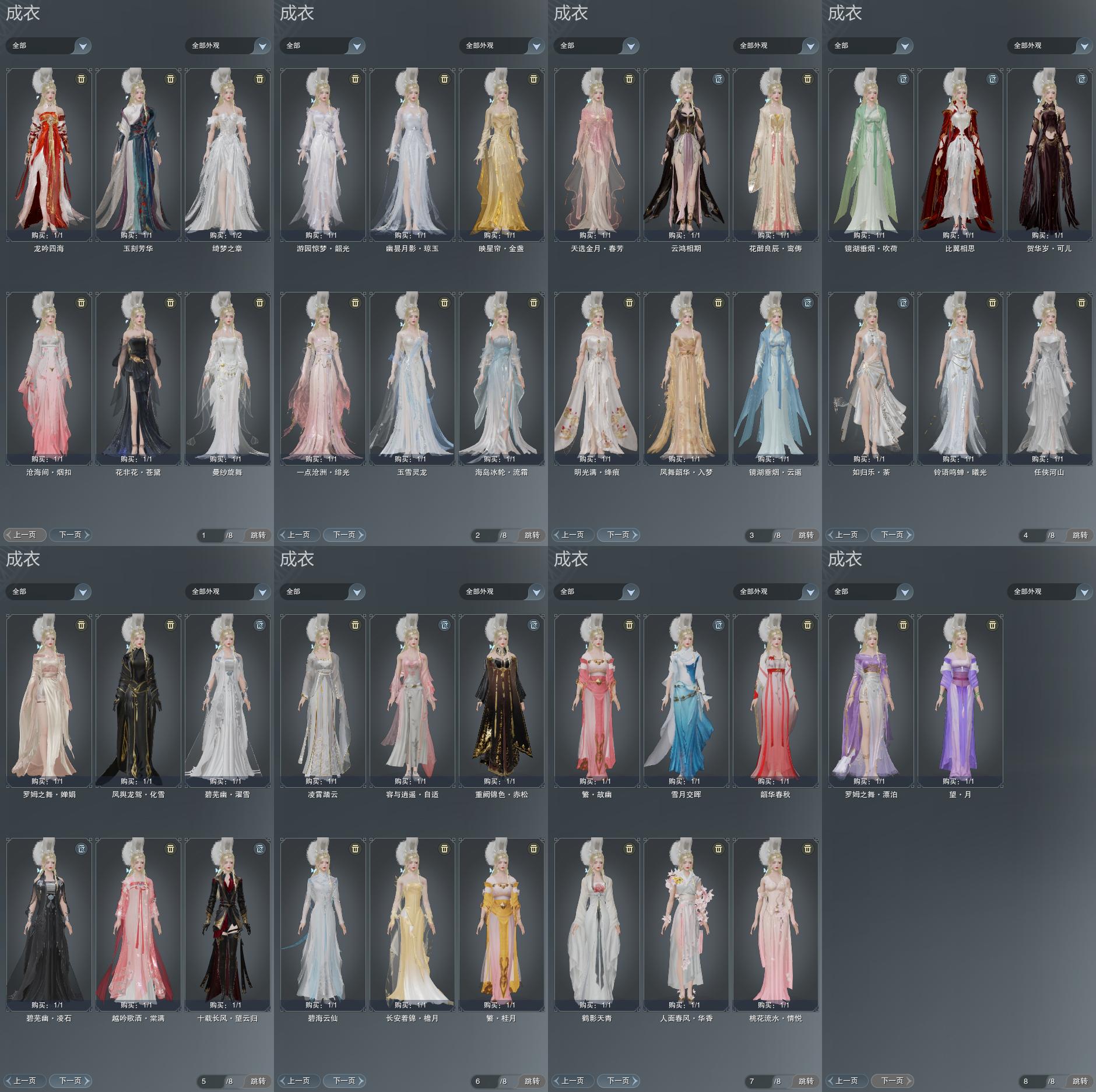 单盒成衣:[白如归衣, 五七盒衣, 金凤舞衣, 白游园衣, 白明光衣, 白六七盒衣, 蓝海岛衣, 白幽昙衣, 粉沧洲盒衣]