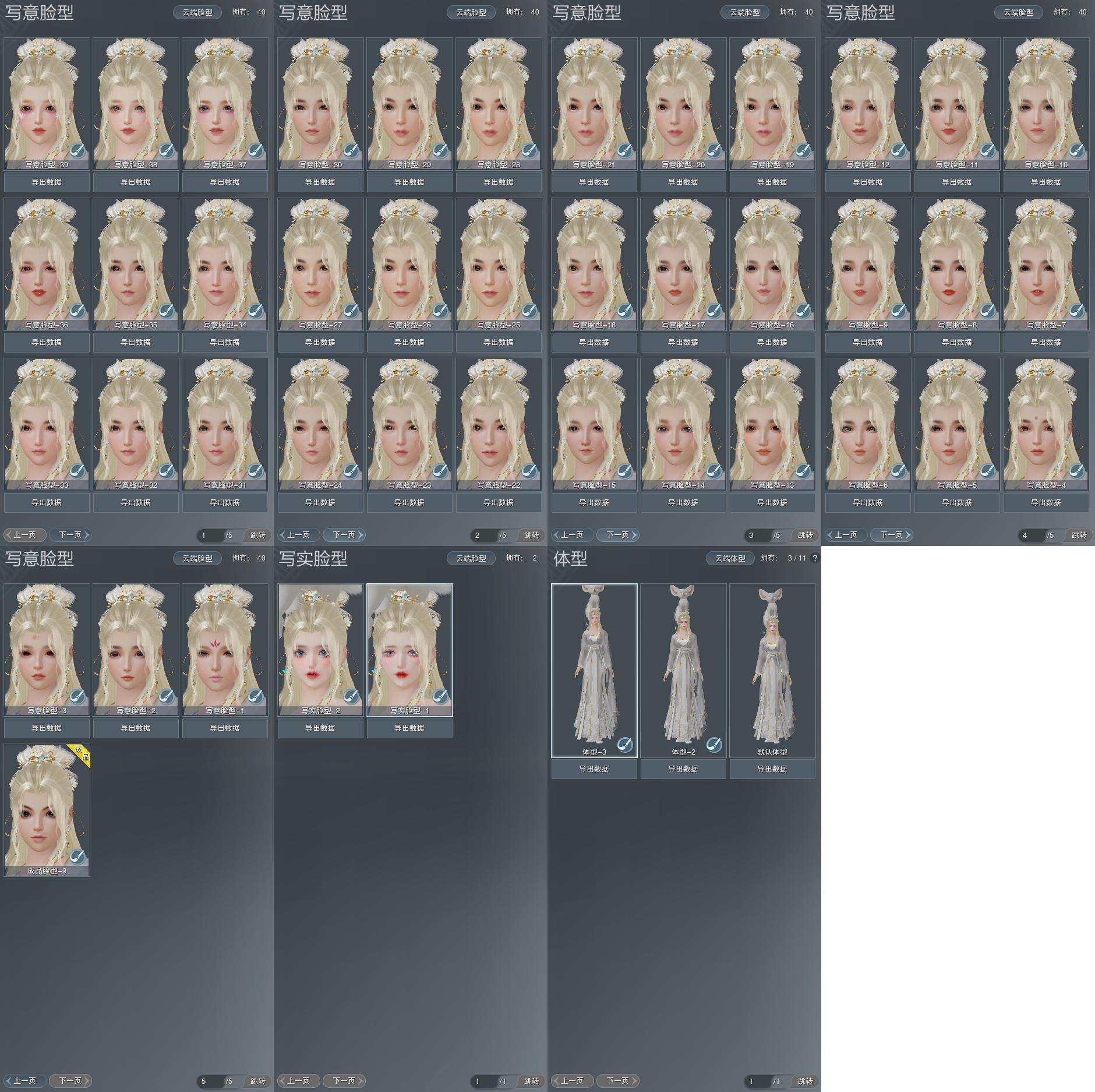 【捏脸】写意脸型40个,写实脸型2个,体型3个