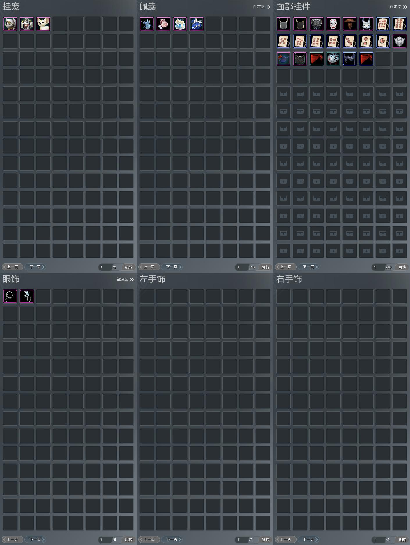 【肩饰】6左,6右,[碧海云仙·左, 华焰披锦·左, 鹤影天青·左][觅花踪·碧空·右, 碧海云仙·右, 鹤影天青·右]