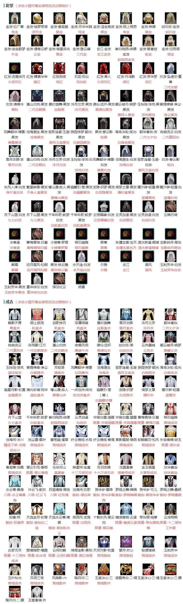 限时限量:[十三万资历衣, 琴台顾鸣筝, 烟花套, 水云寒桑海, 红云飞, 寒梅日暮, 绿长安, 十六万资历衣, 十二周年工作服, 粉水母, 望云垂杨, 云闲归鹤, 白西风, 镜湖云遥, 红玫瑰, 中宵霆露, 黑红绮阁, 十三周年成衣, 富婆套, 中宵渊霜]