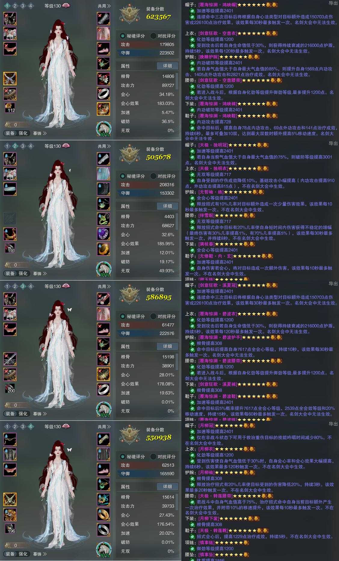 【装备】130级,冰心诀PVP623567,冰心诀PVE505678,七秀装备三586895,七秀装备四550938