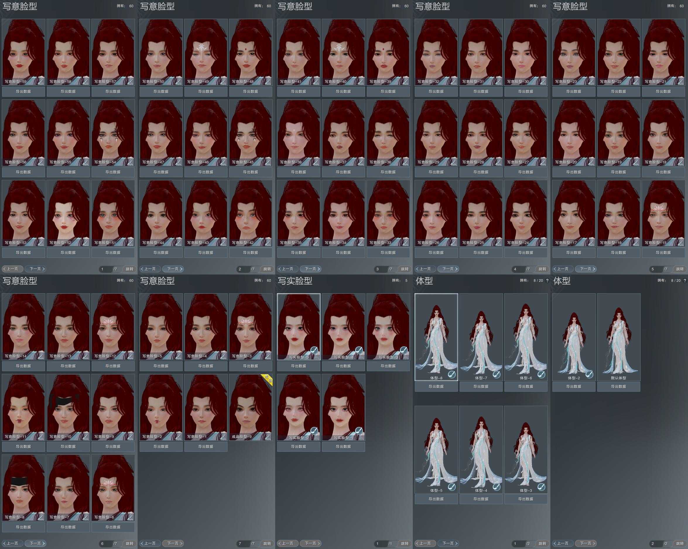 【捏脸】写意脸型60个,写实脸型5个,体型8个