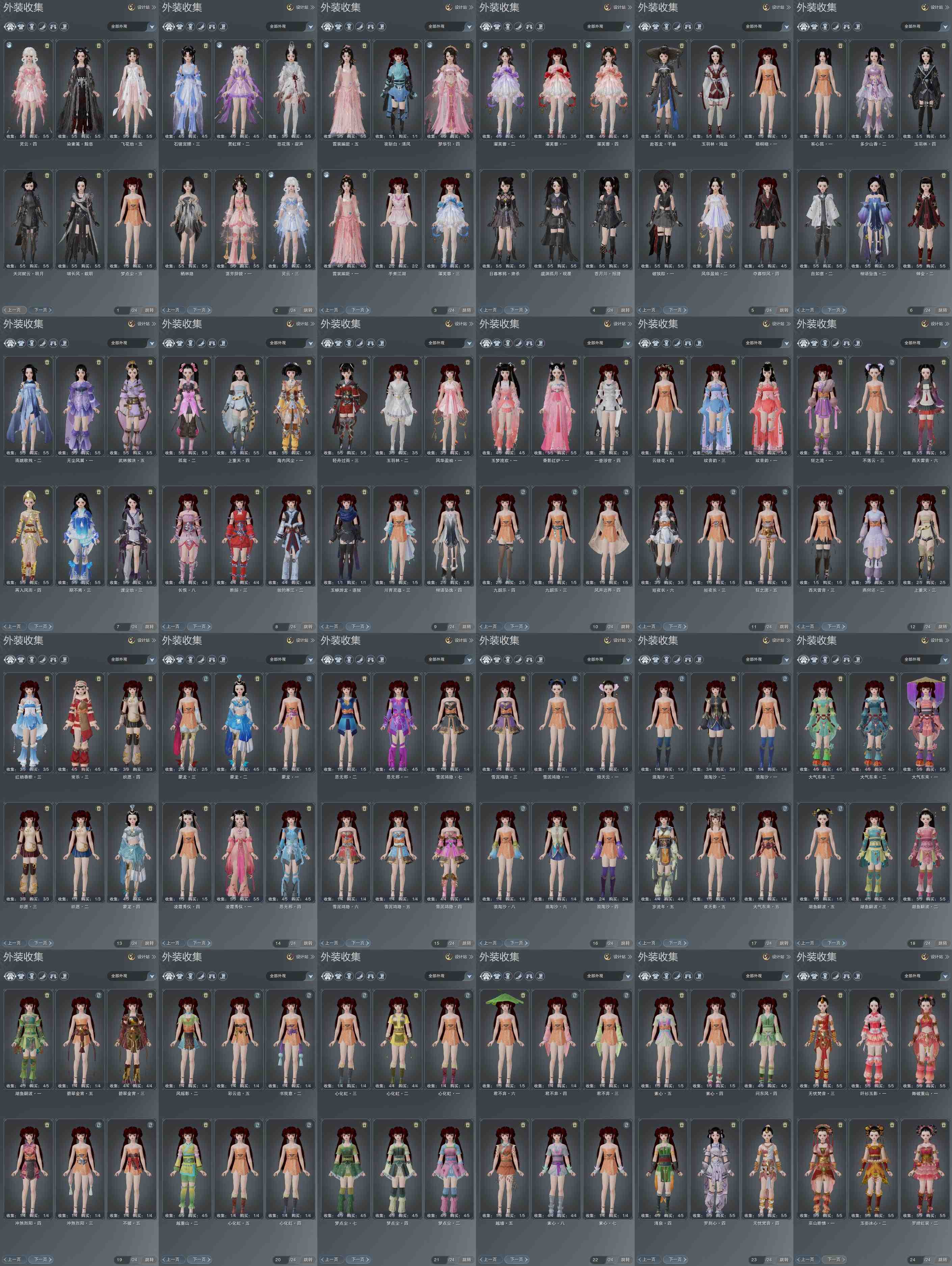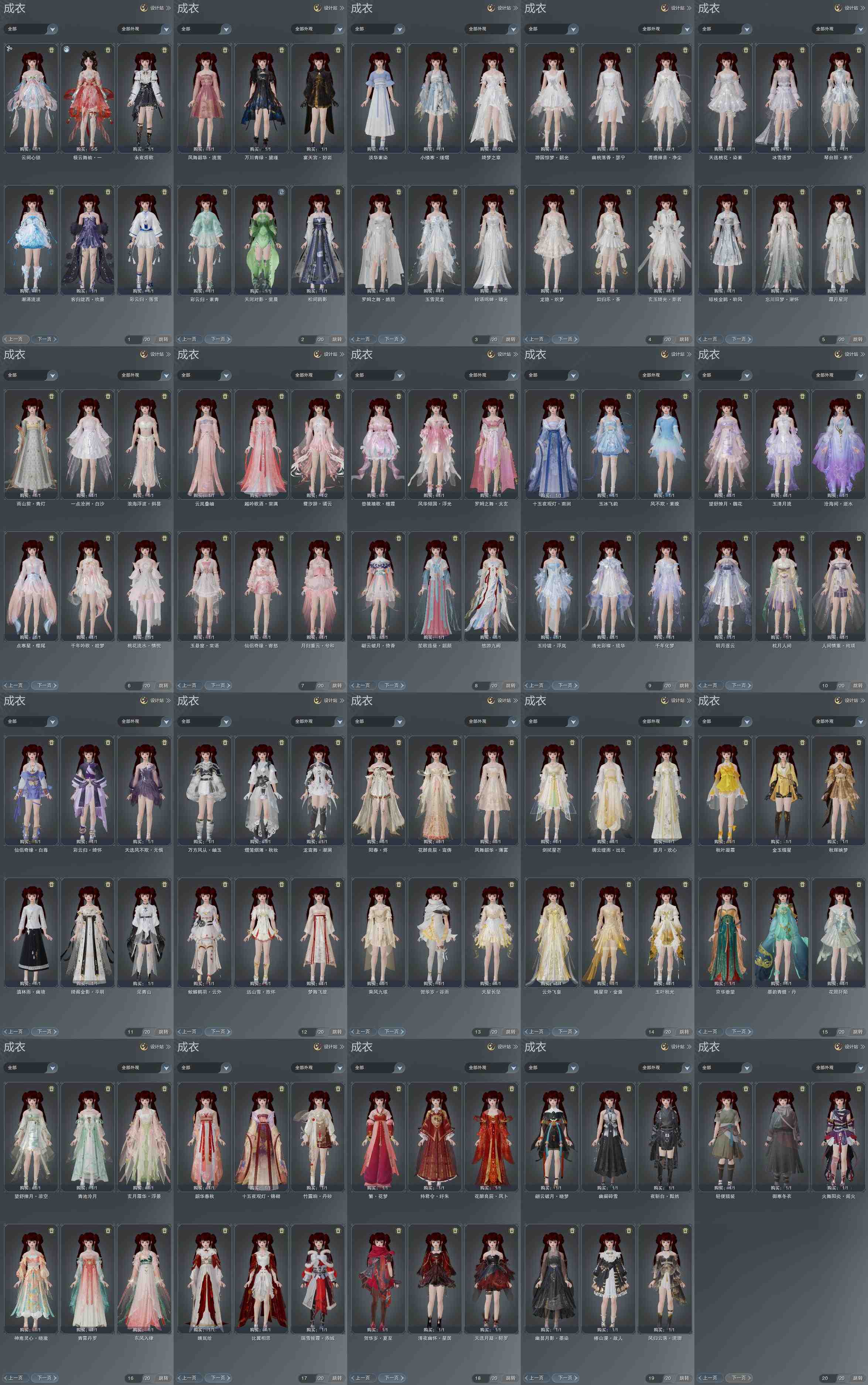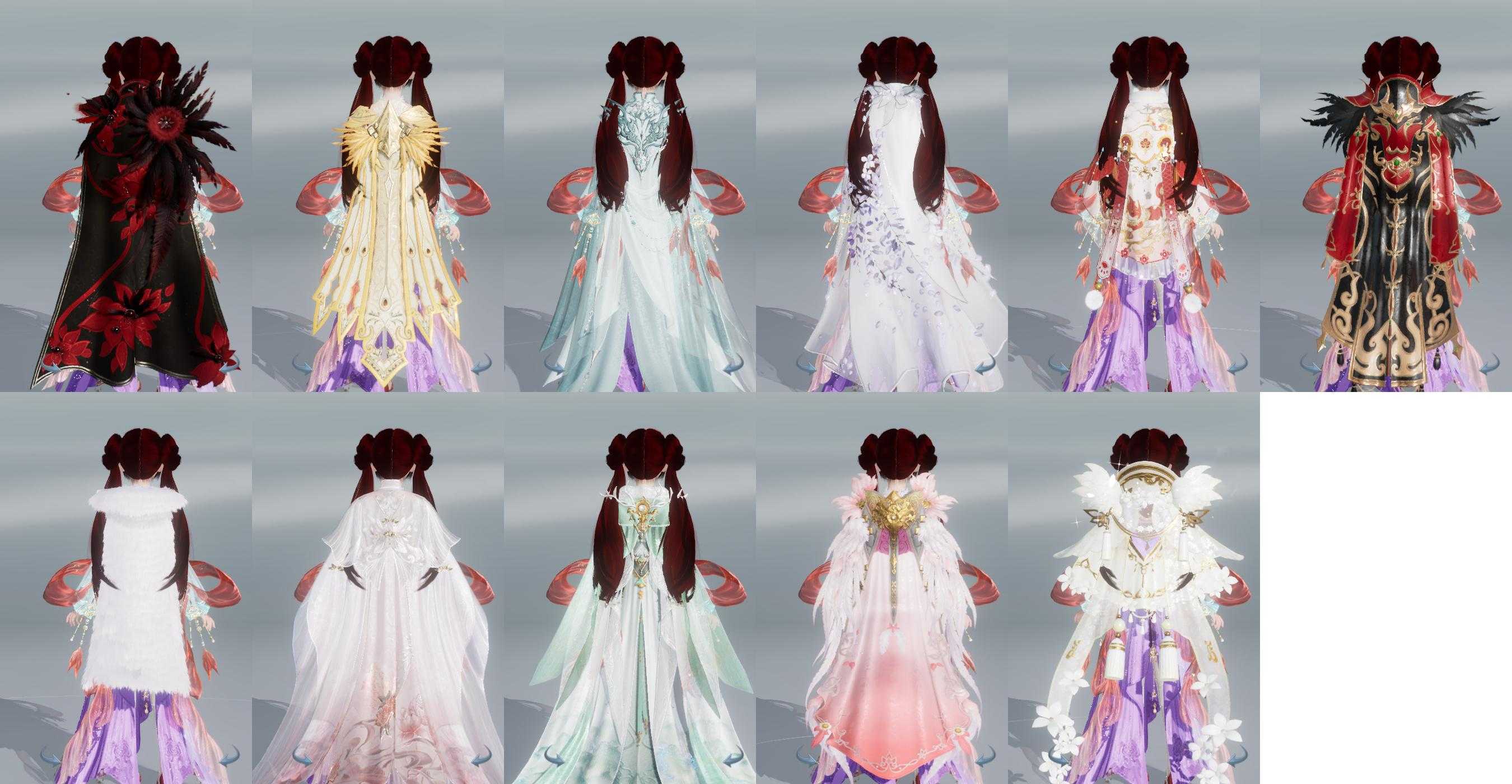 复刻:[望月欢心, 复刻黑玫瑰, 彩云归落雪, 彩云归素青, 阳春烬, 风华浮光, 白二公主, 紫不欺, 夜斩白孤云, 夜斩白暮长, 尽奏映妆, 远山雪旅怀, 五期福袋成衣, 粉仙侣, 复刻粉玄月, 复刻黄绸云]