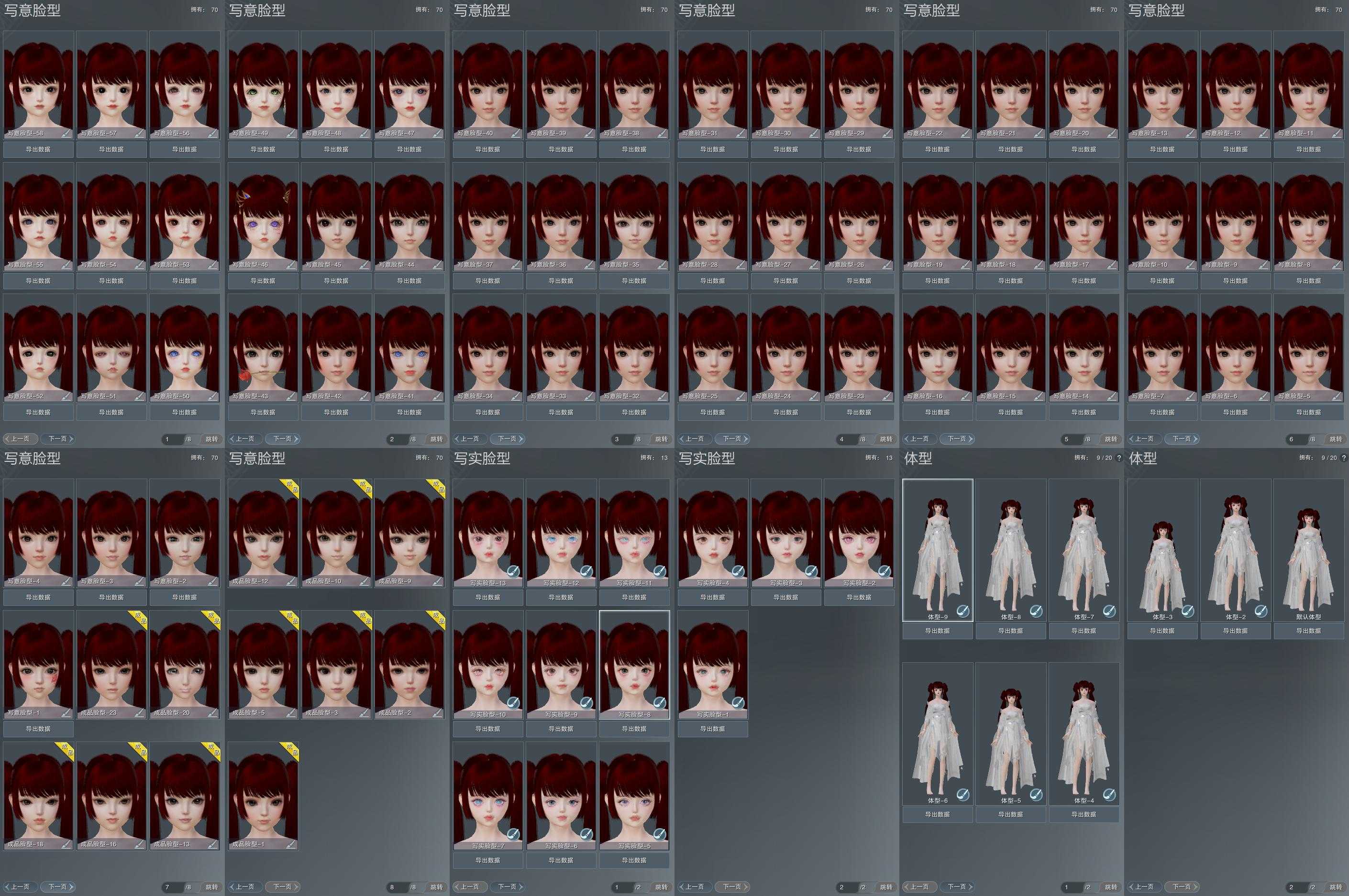 【捏脸】写意脸型70个,写实脸型13个,体型9个