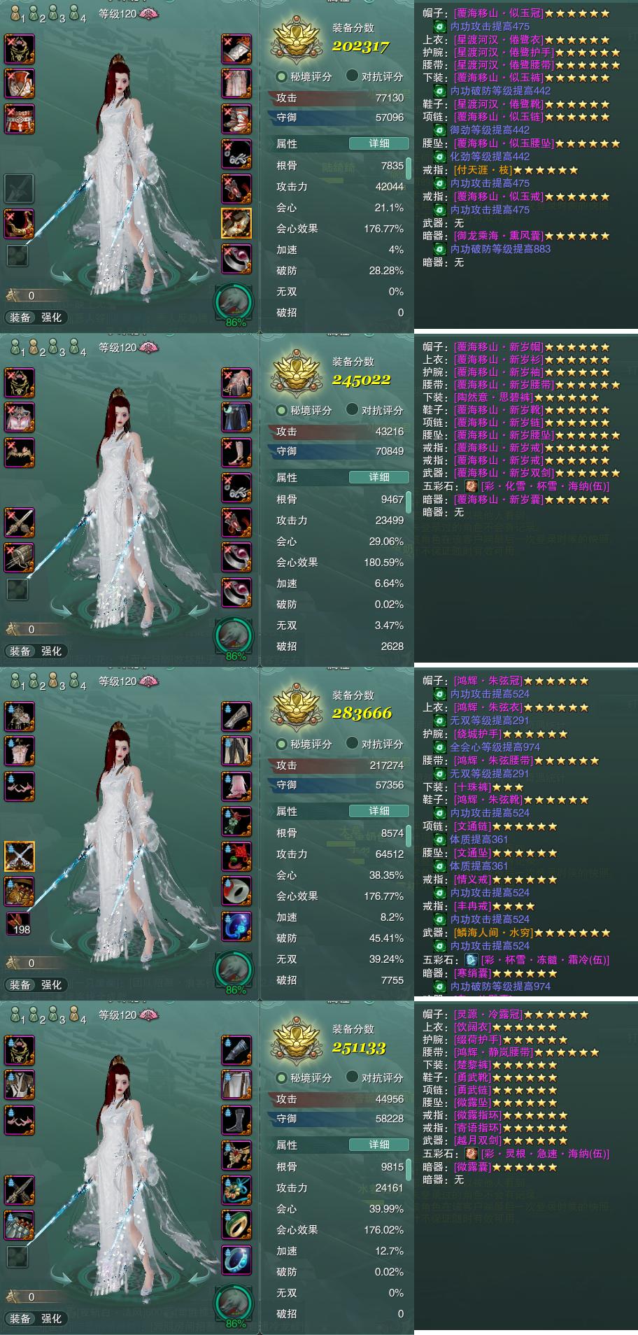 【装备】冰心诀PVP202317,云裳心经PVP245022,冰心诀PVE283666,云裳心经PVE251133