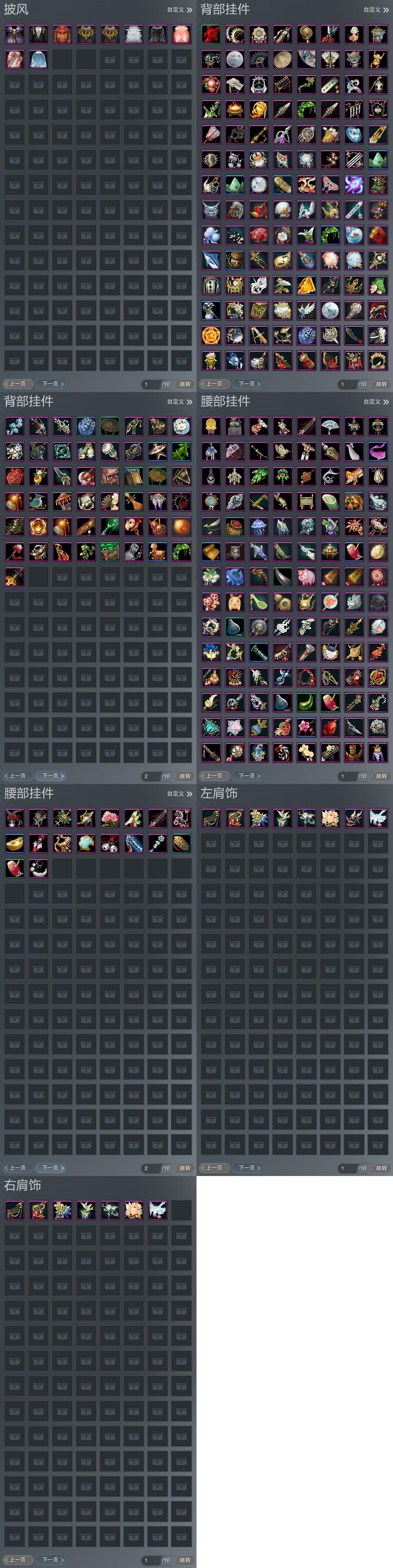 【肩饰】8左,7右,[日月无心·左, 碧海云仙·左, 陌上窈窕·左, 华焰披锦·左, 鹤影天青·左][日月无心·右, 碧海云仙·右, 陌上窈窕·右, 鹤影天青·右]