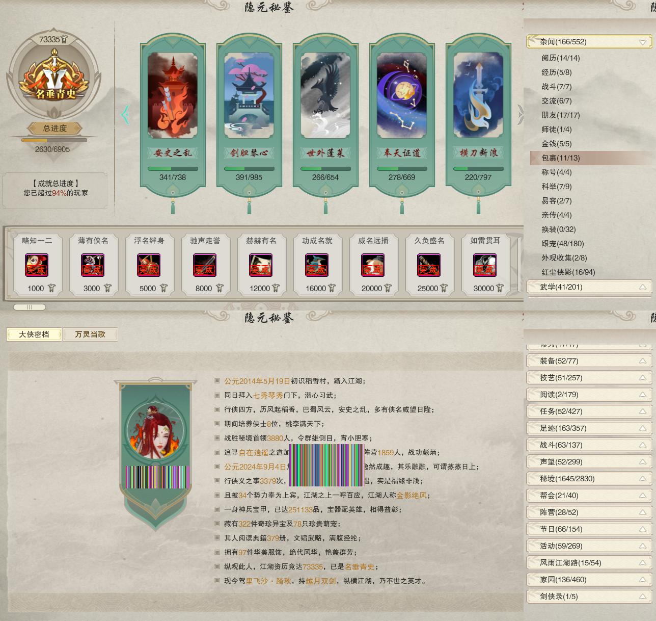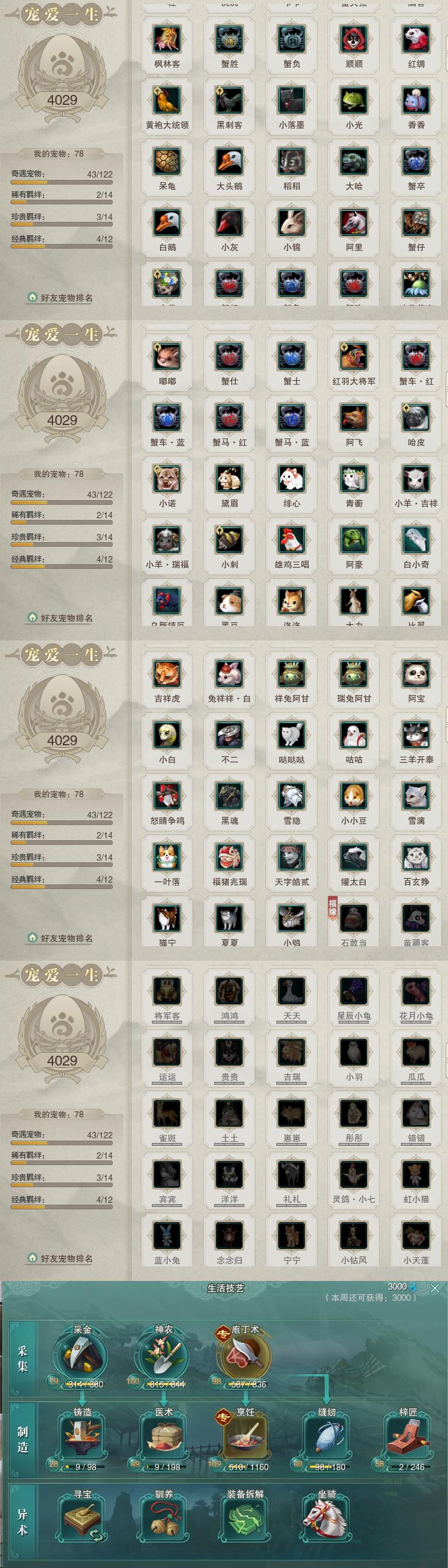 【同伴】阮归云74级境界壹,温辞秋73级境界壹,年小熊73级境界壹,茸茸71级境界壹,温折枝69级境界壹,年小鹿67级境界壹,沈剑心51级境界壹