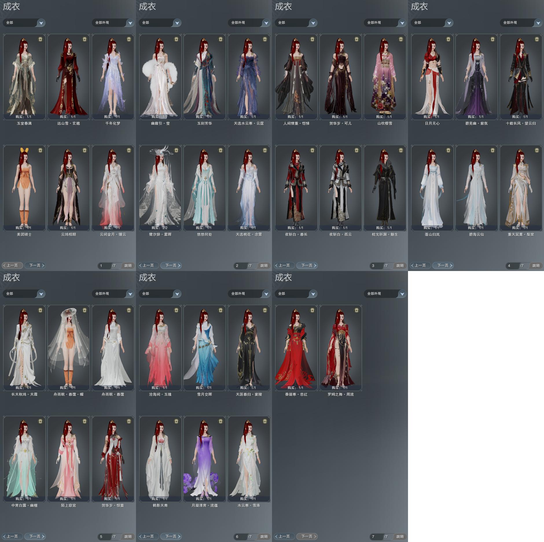 限时限量:[水云寒雪涛, 紫玫瑰, 白长天, 黑天涯, 重天梨棠, 中宵幽檀, 烟花套, 黑枕戈, 十二周年工作服, 十四周年工作服]