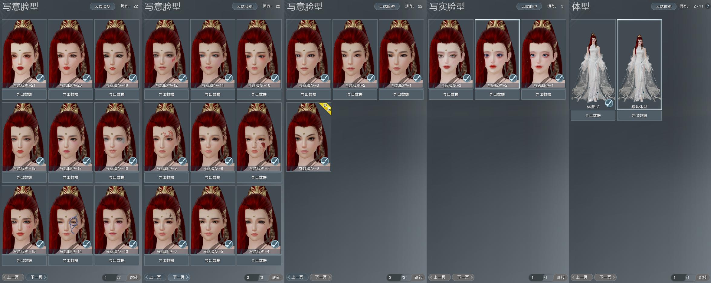 【捏脸】写意脸型22个,写实脸型3个,体型2个