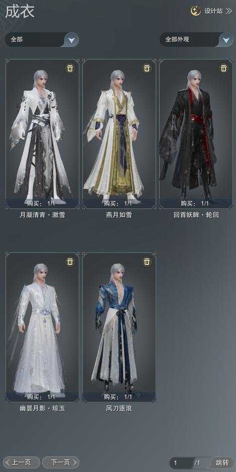 【成衣】总计5件,单盒成衣4件,限时限量1件,商城0件,下架0件