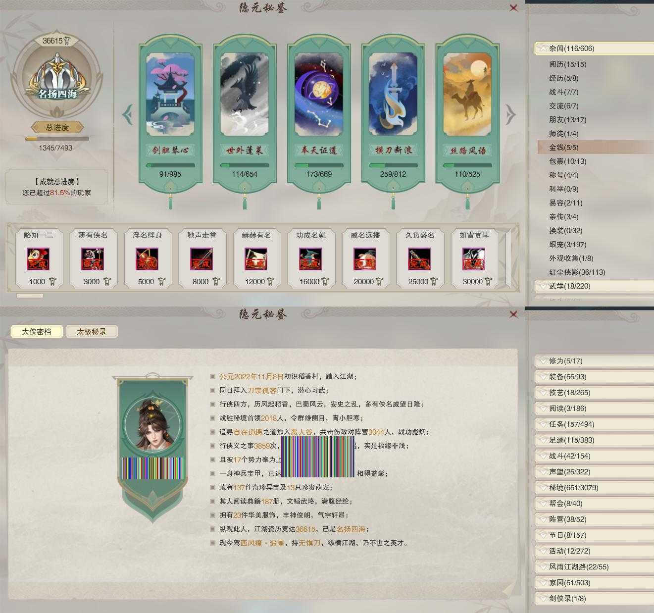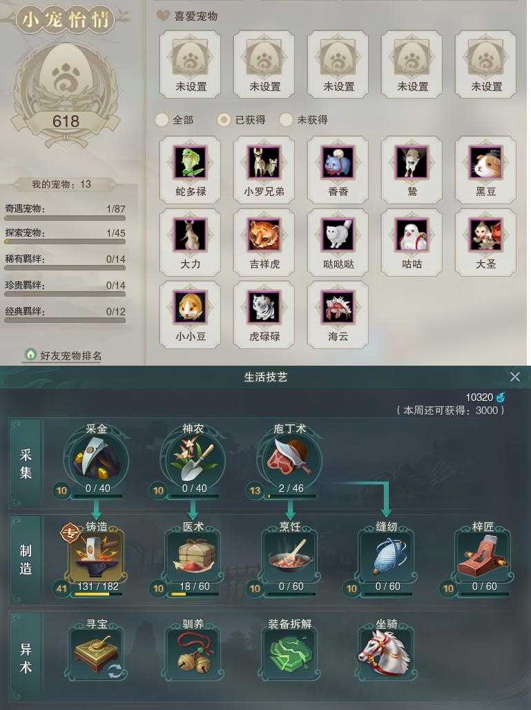 【同伴】沈剑心81级境界贰,沐晴柔80级境界壹,茸茸78级境界壹,盖聂73级境界壹,年小熊72级境界壹,卫庄72级境界壹,阮归云71级境界壹,年小鹿69级境界壹,唐小珂64级境界壹,温折枝64级境界壹,月嘉禾64级境界壹,李星云63级境界壹,贺闲62级境界壹,李逍遥60级境界壹,阮闲舟45级境界壹