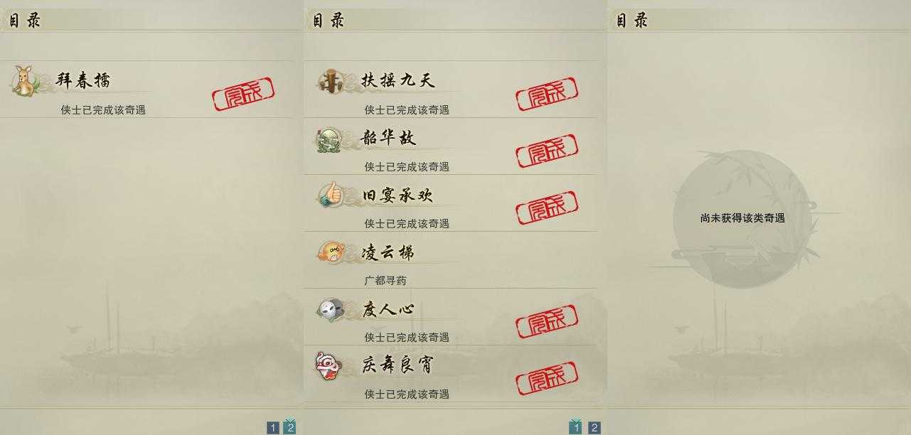 【奇遇】7个[韶华故, 扶摇九天, 庆舞良宵, 凌云梯, 度人心, 旧宴承欢, 拜春擂]