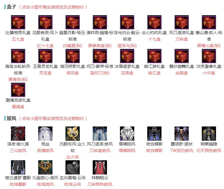 单盒成衣:[雪月盒衣, 黑狮盒衣, 小熊衣, 卿酒盒衣, 黑上火]
