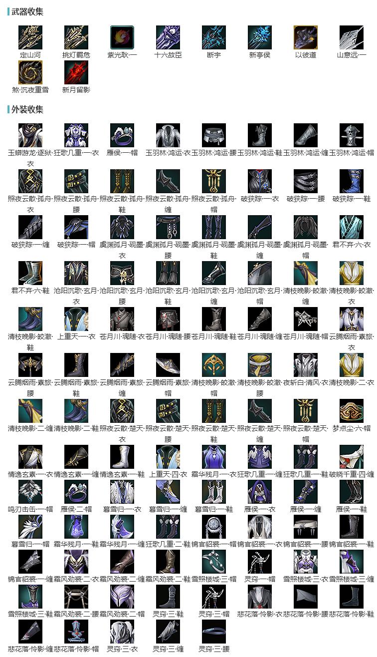 【拓印】10武器, 101成衣收集,95CW拓印新亭侯,110CW拓印以彼道,120奇遇CW拓印煞·沉夜重雪,80小CW拓印新月留影