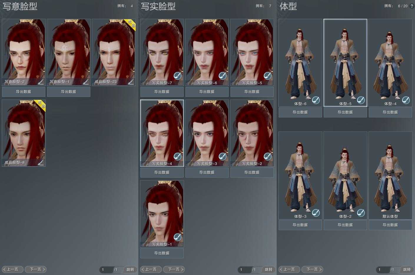 【捏脸】写意脸型4个,写实脸型7个,体型6个