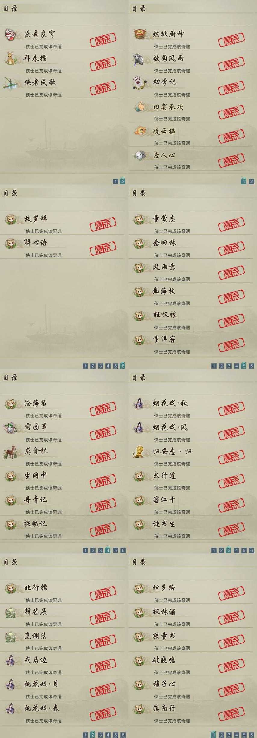 【奇遇】9个[劝学记, 故园风雨, 庆舞良宵, 炼狱厨神, 凌云梯, 度人心, 旧宴承欢, 侠者成歌, 拜春擂]